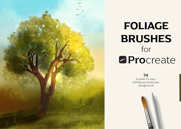 In this collection I have gathered some of the most useful plant brushes that will help you to draw realistic landscapes. There are brushes for leaves, clouds, fir-tree, grass, birds and more. Painting realistic forest in Procreate is quite easy even for beginners if you use the right brushes.