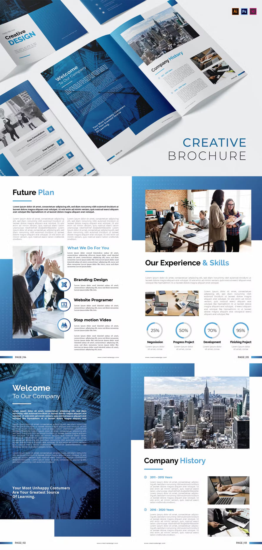 Creative Design Brochure Template. A quality brochure template that you can download for any project purpose. You can customize it according to your various wants and needs with ease.